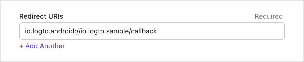io.logto.android をカスタム LOGTO_REDIRECT_SCHEME とし、io.logto.sample をあなたのアプリのパッケージ名と仮定すると、リダイレクト URI は io.logto.android://io.logto.sample/callback になります。